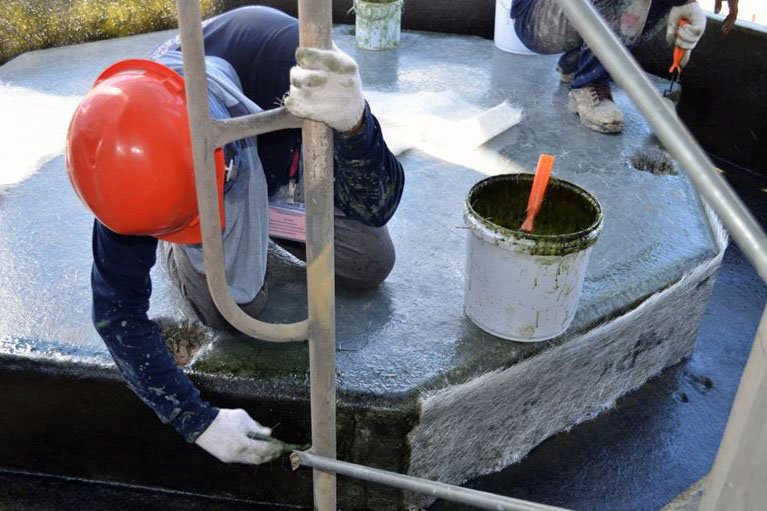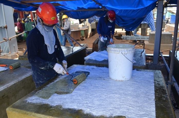 Permaglas Hard Core is an FRP lining system suitable for a heavy duty lining for concrete and steel structure in immersion service. It reinforces resistance to chemical such as solvent, water, sea water, acid, waste water, alkaline. It is also suitable for a heavy duty lining for concrete and steel structure immersion at temperature ranging from 100C to 180C. It can be applied to process plants and sewage works, chemical storage tanks, pipes, floors, hood scrubbers, exhaust stacks and waste water tanks.